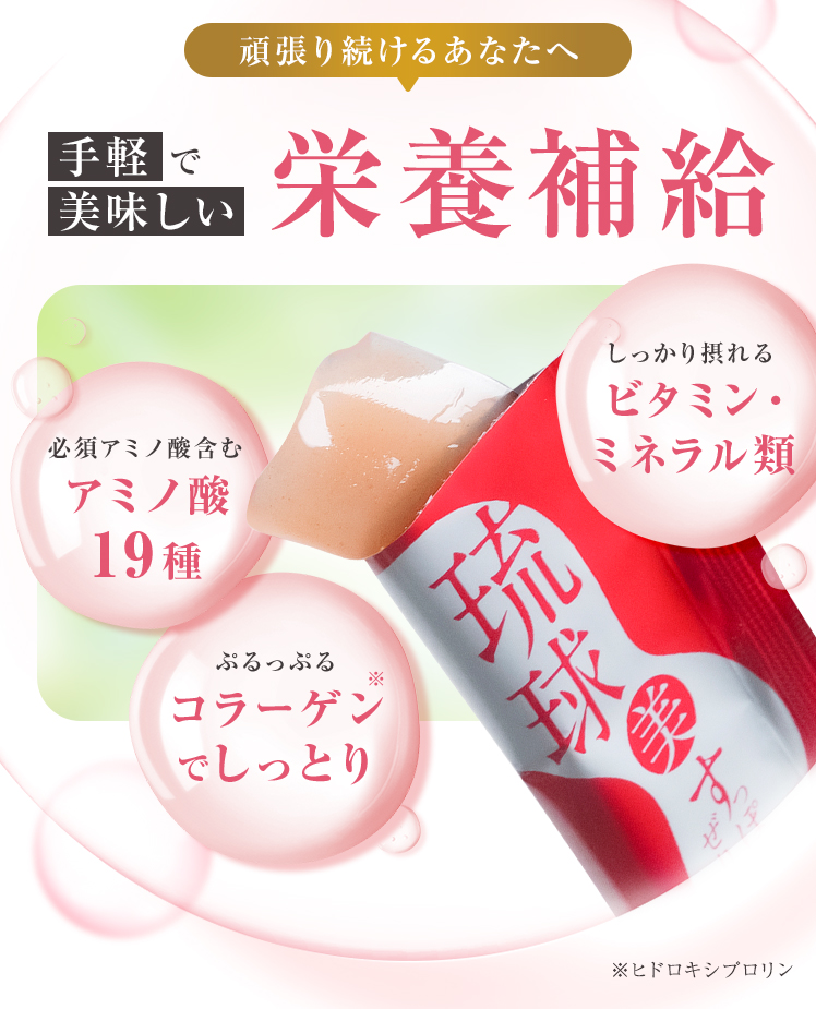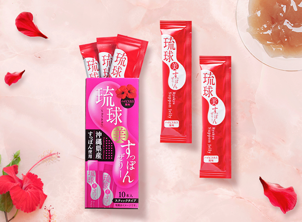「琉球 美・すっぽんぜりー」は、いつでもどこでも手軽に栄養補給できるスティックタイプのコラーゲンゼリーです。
